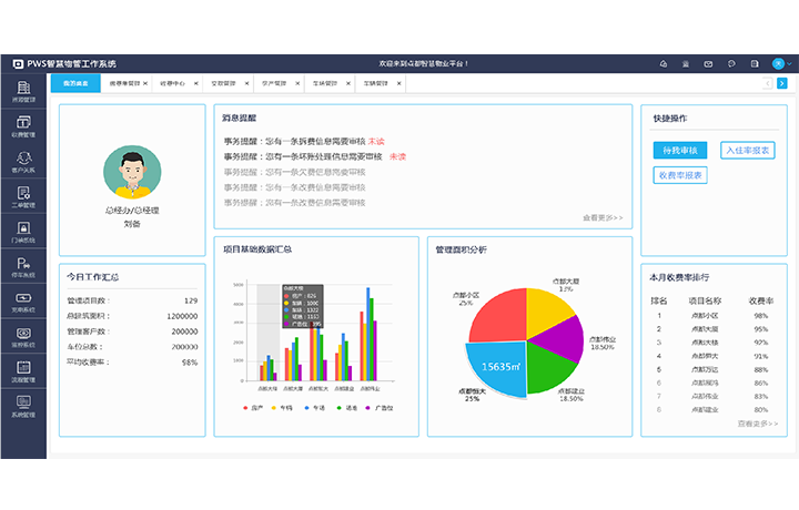物管服務(wù):物業(yè)管理采用智慧社區(qū)綜合管理平臺進(jìn)行人、財、物、事數(shù)字化管理,主要包括工單管理、繳費管理、人事管理和設(shè)施管理等,其中物業(yè)工單,可實現(xiàn)報事報修工單標(biāo)準(zhǔn)化流程化作業(yè),加強(qiáng)了總部對線下物業(yè)人員的管控能力,打破了傳統(tǒng)模式現(xiàn)場服務(wù)質(zhì)量取證難,有償收費監(jiān)控難弊端,實現(xiàn)高效實時管理與統(tǒng)計;物業(yè)繳費,破解傳統(tǒng)收費上的費時、費力、易錯、監(jiān)管難與核對難問題,同時減輕上門收費工作量。