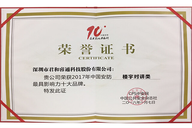 君和睿通秉承“科技成就生活之美“的品牌理念,一直致力于打造值得客戶信賴的行業(yè)領(lǐng)先品牌,以高品質(zhì)、優(yōu)服務(wù)回饋市場(chǎng)的支持與認(rèn)可。君和睿通本著以產(chǎn)品為企業(yè)核心價(jià)值導(dǎo)向,通過(guò)產(chǎn)品技術(shù)、品質(zhì)、服務(wù)的變革升級(jí),為客戶提供“智能化、人性化、專業(yè)化”的產(chǎn)品服務(wù)。本次喜獲“2017年樓宇對(duì)講最具影響力十大品牌”也是從另一方面體現(xiàn)出客戶對(duì)君和睿通的認(rèn)可和喜愛(ài)。